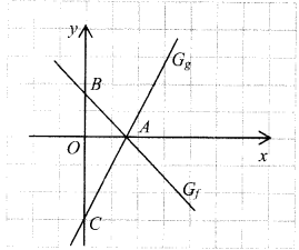 (3p) b) Știind că $~B~$ și $~C~$ sunt punctele de intersecție a reprezentărilor graficelor funcțiilor $~f,~$ respectiv $~g,~$ cu axa $~O y~$ a sistemului de axe ortogonale $~x O y,~$ determină măsura unghiului $~B A C.$