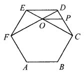 În figura alăturată este reprezentat un hexagon regulat $~A B C D E F,~$ având perimetrul egal cu 36 cm. Fie $~O~$ punctul de intersecție a dreptelor $~E C~$ şi $~F D,~$ iar dreapta $~O P~$ este paralelă cu $~E D, P \in D C.$